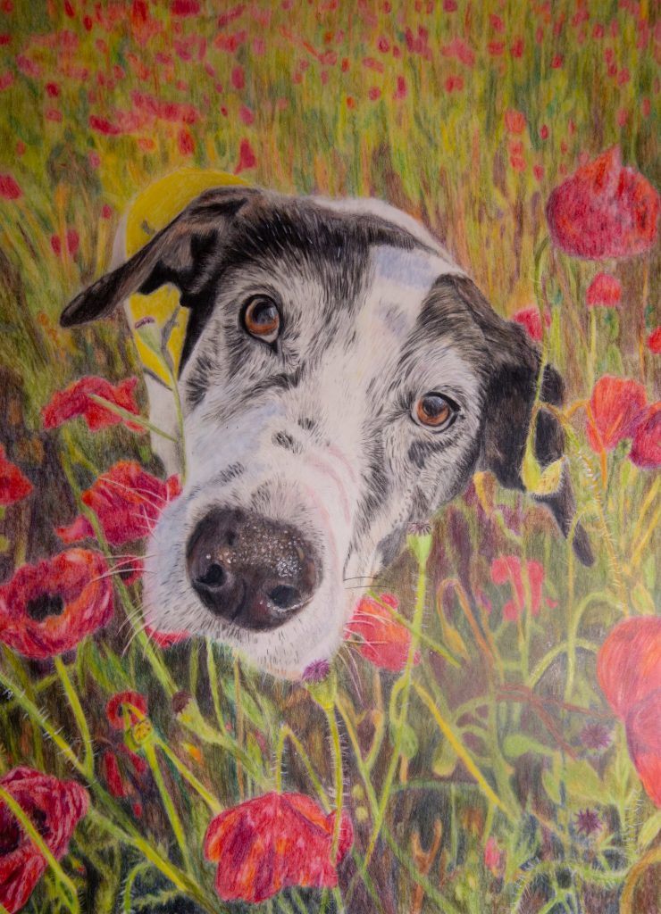 Through her artwork, she hopes to celebrate the bond people share with their animals while also helping more people understand the needs of sensitive or reactive dogs.