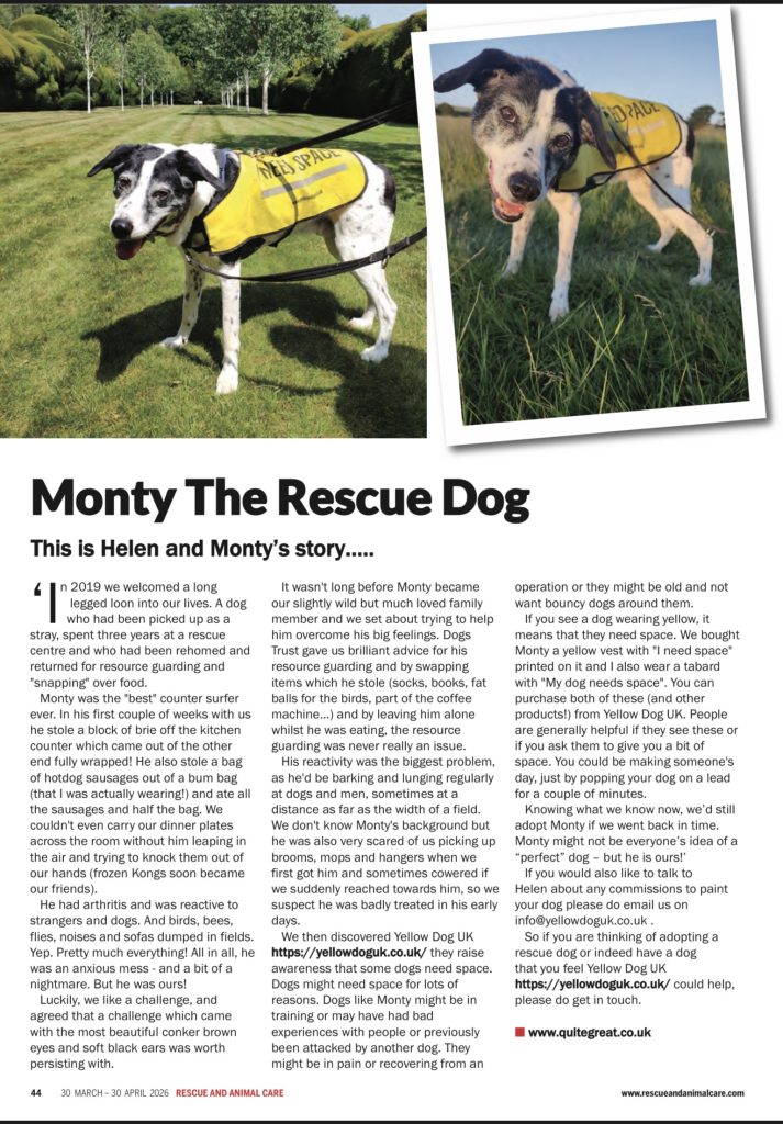Read about how Yellow Dog https://yellowdoguk.co.uk/ helped Helen and Monty with their rescue dog journey and ultimate happy ending! (page 44)
